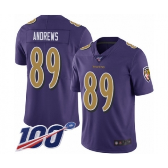 Men's Baltimore Ravens #89 Mark Andrews Limited Purple Rush Vapor Untouchable 100th Season Football Jersey