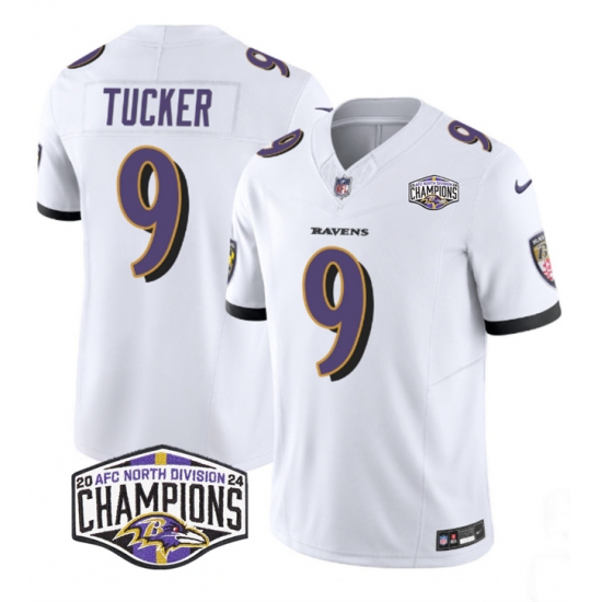 Men's Baltimore Ravens #9 Justin Tucker White F.U.S.E 2024 AFC North Division Champions Vapor Limited Football Jersey