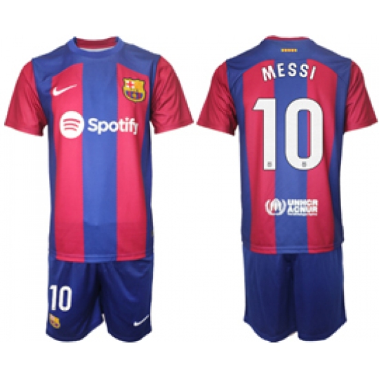 Men's Barcelona #10 Messi Blue Red 2023-24 Home Soccer Jersey