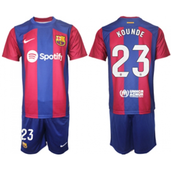 >Men's Barcelona #23 Kounde Blue Red 2023-24 Home Soccer Jersey