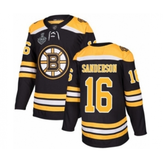 Men's Boston Bruins #16 Derek Sanderson Authentic Black Home 2019 Stanley Cup Final Bound Hockey Jersey