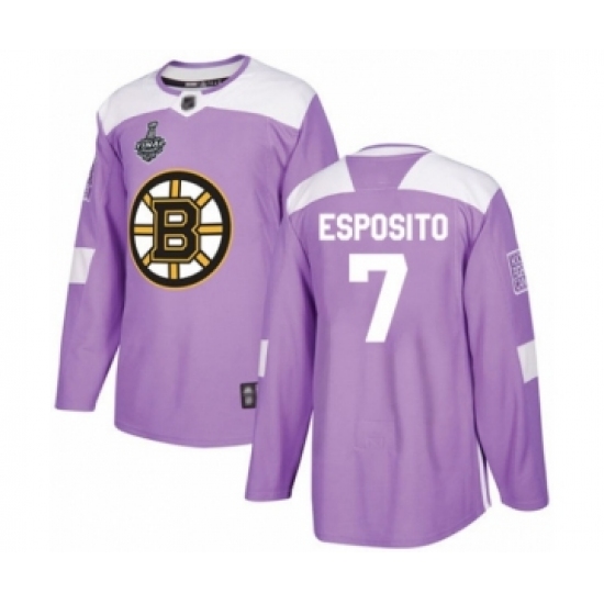 >Men's Boston Bruins #7 Phil Esposito Authentic Purple Fights Cancer Practice 2019 Stanley Cup Final Bound Hockey Jersey