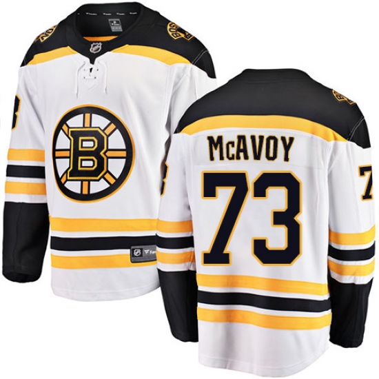 Men's Boston Bruins #73 Charlie McAvoy Authentic White Away Fanatics Branded Breakaway NHL Jersey