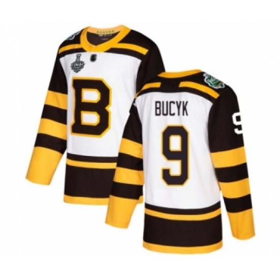 Men's Boston Bruins #9 Johnny Bucyk Authentic White Winter Classic 2019 Stanley Cup Final Bound Hockey Jersey