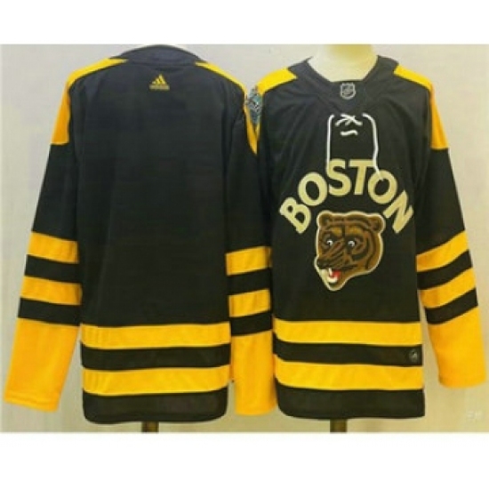 Men's Boston Bruins Blank Black 100th Anniversary Stitched Hockey Jersey