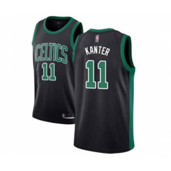 >Men's Boston Celtics #11 Enes Kanter Authentic Black Basketball Jersey - Statement Edition