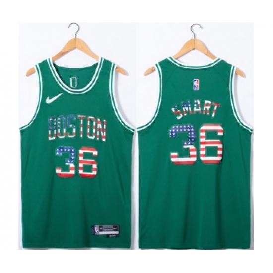 Men's Boston Celtics #36 Marcus Smart USA Flag Green Stitched Jersey