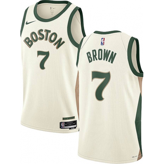 Men's Boston Celtics #7 Jaylen Brown 2024 Finals Champions City Edition Stitched Basketball Jersey