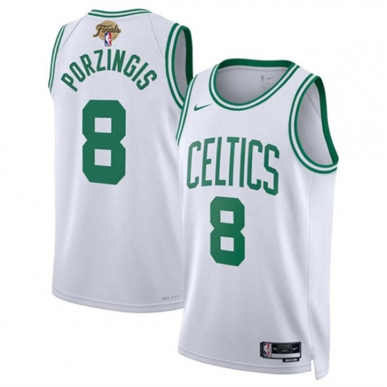 >Men's Boston Celtics #8 Kristaps Porzingis White 2024 Finals Association Edition Stitched Basketball Jersey
