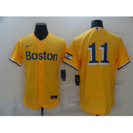 Men's Boston Red Sox #11 Rafael Devers Nike Gold-Light Blue 2021 City Connect Jersey