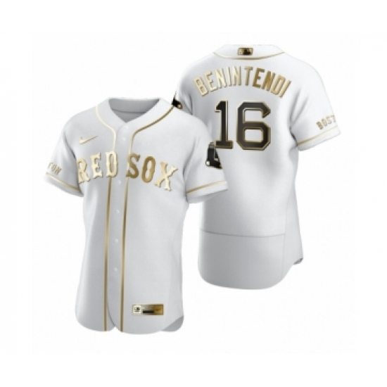 >Men's Boston Red Sox #16 Andrew Benintendi Nike White Authentic Golden Edition Jersey