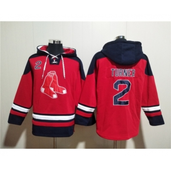 >Men's Boston Red Sox #2 Justin Turner Red Ageless Must-Have Lace-Up Pullover Hoodie