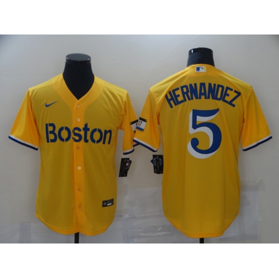 Men's Boston Red Sox #5 Enrique Hernandez Nike Gold-Light Blue 2021 City Connect Jersey