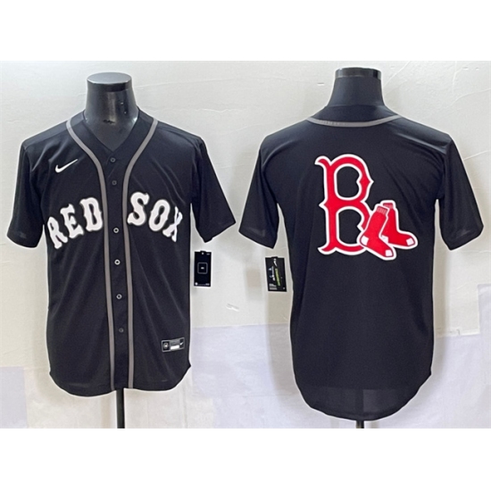 Men's Boston Red Sox Team Big Logo Black Lights Out Limited Stitched Baseball Jersey