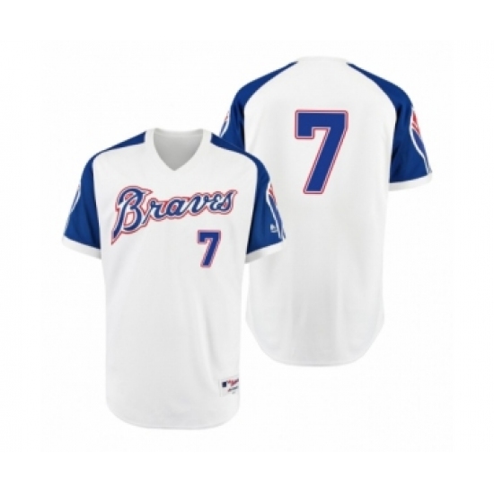 Men's Braves #7 Dansby Swanson White 1974 Turn Back the Clock Authentic Jersey