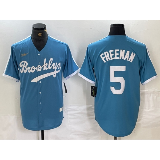 Men's Brooklyn Dodgers #5 Freddie Freeman Light Blue Cooperstown Collection Cool Base Jersey
