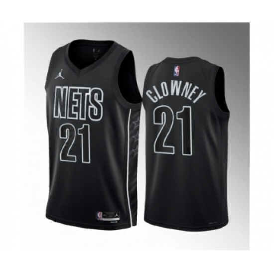 Men's Brooklyn Nets #21 Noah Clowney Black 2023 Draft Statement Edition Stitched Basketball Jersey