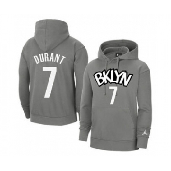 Men's Brooklyn Nets #7 Kevin Durant 2021 Grey Pullover Basketball Hoodie