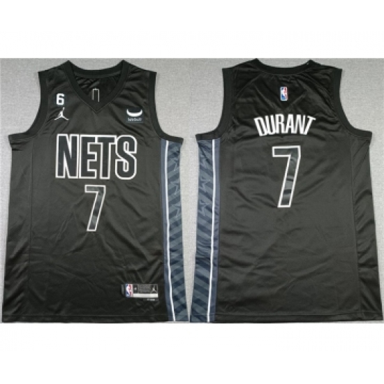 >Men's Brooklyn Nets #7 Kevin Durant Black2022-23 Statement Edition No.6 Patch Stitched Basketball Jersey