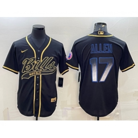 >Men's Buffalo Bills #17 Josh Allen Black Gold Vapor Smoke With Patch Cool Base Stitched Baseball Jersey
