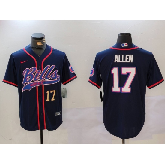 >Men's Buffalo Bills #17 Josh Allen Navy Team Cool Base Stitched Baseball Jerseys
