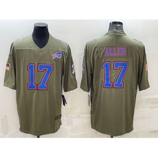 >Men's Buffalo Bills #17 Josh Allen Olive Salute To Service Limited Stitched Jersey