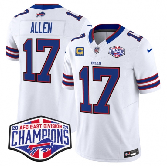 Men's Buffalo Bills #17 Josh Allen White F.U.S.E. 2024 AFC East Division Champions With 4-Star C Vapor Limited Stitched Football Jersey