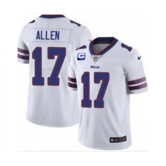>Men's Buffalo Bills #17 Josh Allen With C Patch White Vapor Untouchable Limited Stitched Jersey