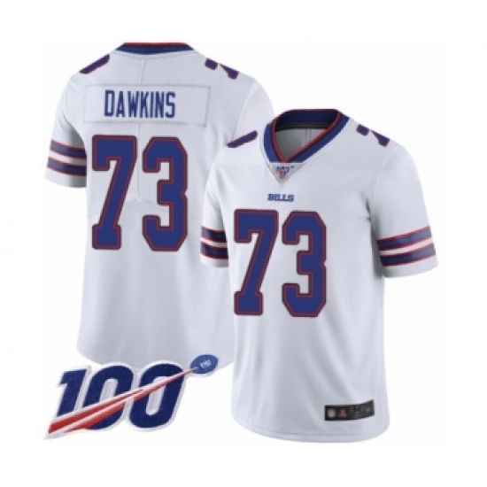 >Men's Buffalo Bills #73 Dion Dawkins White Vapor Untouchable Limited Player 100th Season Football Jersey