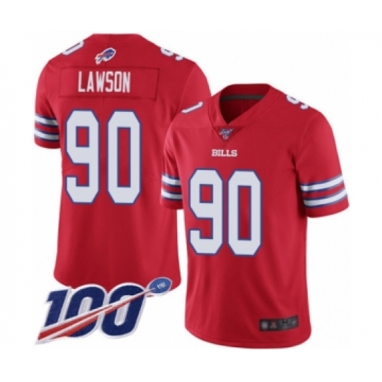 >Men's Buffalo Bills #90 Shaq Lawson Limited Red Rush Vapor Untouchable 100th Season Football Jersey
