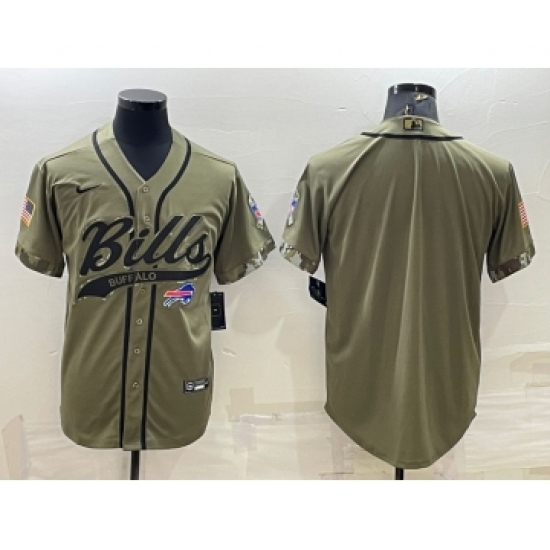 Men's Buffalo Bills Blank Olive Salute to Service Cool Base Stitched Baseball Jersey