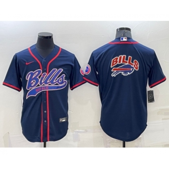 >Men's Buffalo Bills Navy Team Blue Big Logo With Patch Cool Base Stitched Baseball Jersey