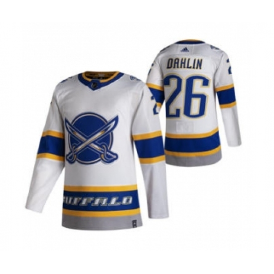 >Men's Buffalo Sabres #26 Rasmus Dahlin White 2020-21 Reverse Retro Alternate Hockey Jersey