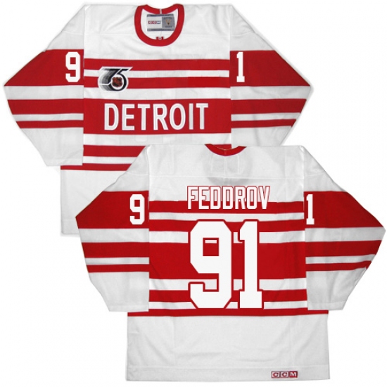 Men's CCM Detroit Red Wings #91 Sergei Fedorov Authentic White 75TH Throwback NHL Jersey