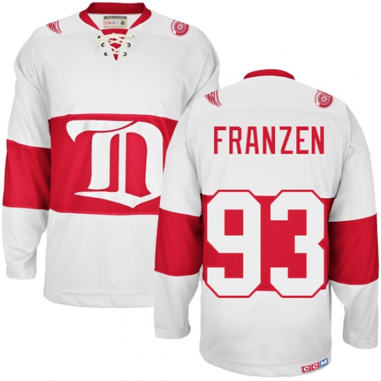 Men's CCM Detroit Red Wings #93 Johan Franzen Authentic White Winter Classic Throwback NHL Jersey