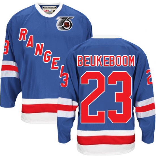 Men's CCM New York Rangers #23 Jeff Beukeboom Authentic Royal Blue 75TH Throwback NHL Jersey