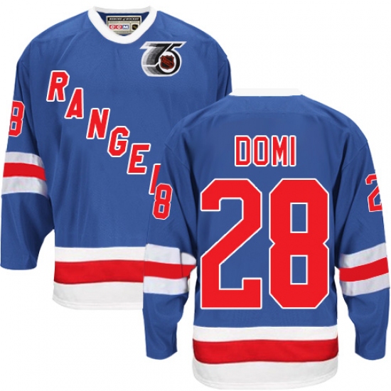 Men's CCM New York Rangers #28 Tie Domi Premier Royal Blue 75TH Throwback NHL Jersey