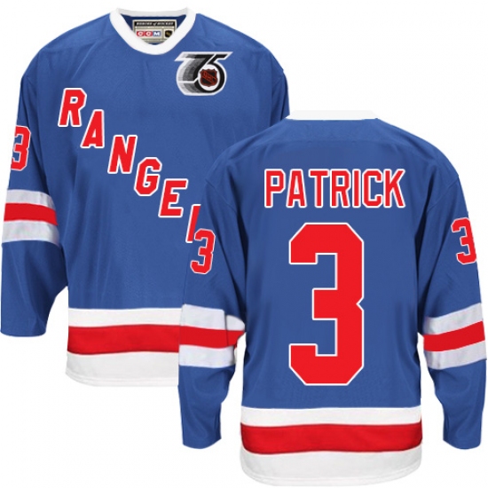 Home>NHL>New York Rangers>James Patrick>Men's CCM New York Rangers #3 James Patrick Authentic Royal Blue 75TH Throwback NHL Jersey