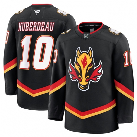 Men's Calgary Flames #10 Jonathan Huberdeau Black 2024-25 Alternate Stitched Hockey Jersey