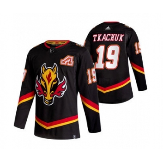 Men's Calgary Flames #19 Matthew Tkachuk Black 2020-21 Reverse Retro Alternate Hockey Jersey
