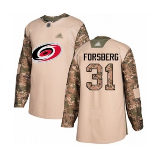 >Men's Carolina Hurricanes #31 Anton Forsberg Authentic Camo Veterans Day Practice Hockey Jersey
