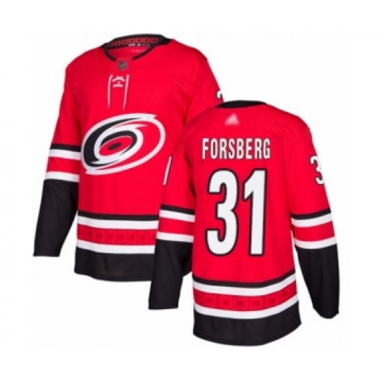 >Men's Carolina Hurricanes #31 Anton Forsberg Authentic Red Home Hockey Jersey