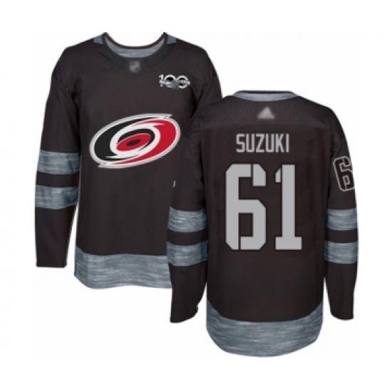 Men's Carolina Hurricanes #61 Ryan Suzuki Authentic Black 1917-2017 100th Anniversary Hockey Jersey