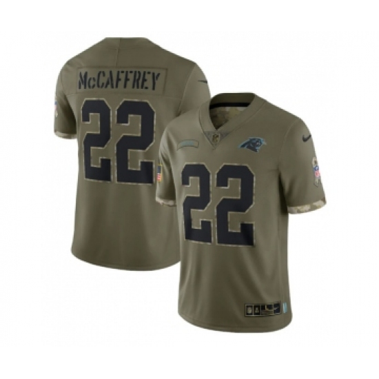 Men's Carolina Panthers #22 Christian McCaffrey 2022 Olive Salute To Service Limited Stitched Jersey