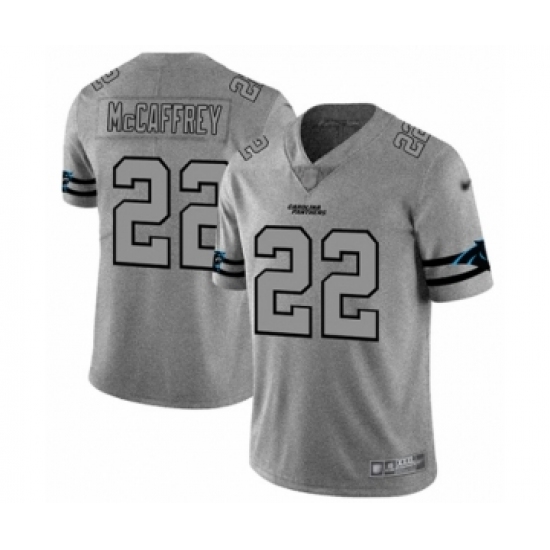 >Men's Carolina Panthers #22 Christian McCaffrey Limited Gray Team Logo Gridiron Football Jersey