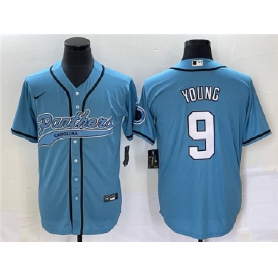 >Men's Carolina Panthers #9 Bryce Young Blue Cool Base Stitched Baseball Jersey