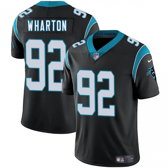 >Men's Carolina Panthers #92 Tershawn Wharton Black 2025 Vapor Limited Football Stitched Jersey