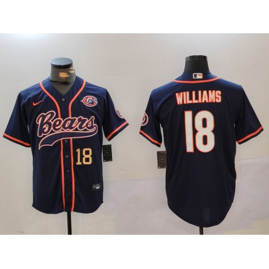 Men's Chicago Bears #18 Caleb Williams Navy Throwback With Cool Base Stitched Baseball Jerseys