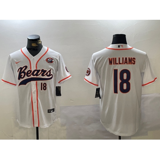 Men's Chicago Bears #18 Caleb Williams White With Cool Base Stitched Baseball Jersey