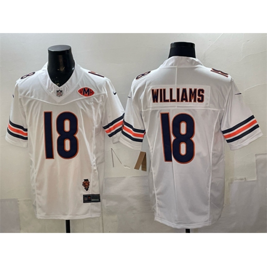 >Men's Chicago Bears #18 Caleb Williams White F.U.S.E. With Illinois and VMH Stitched Football Jersey